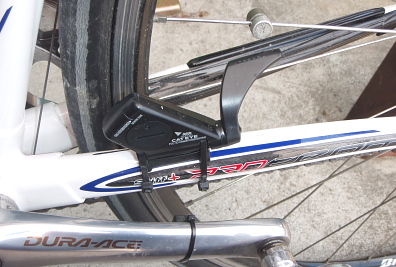 スピードはスポークに取り付けたセンサーで、また、ペダル回転数もセンサーで拾ってから無線でハンドルのメーターに信号を飛ばしています。